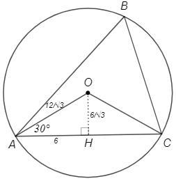 В равнобедренном △AOC проведем высоту OH к основанию. Она также является медианой, AH=AC/2=6. Рассмотрим △AOH. Катет OH против угла 30° равен половине гипотенузы, OH=OA/2. По теореме Пифагора