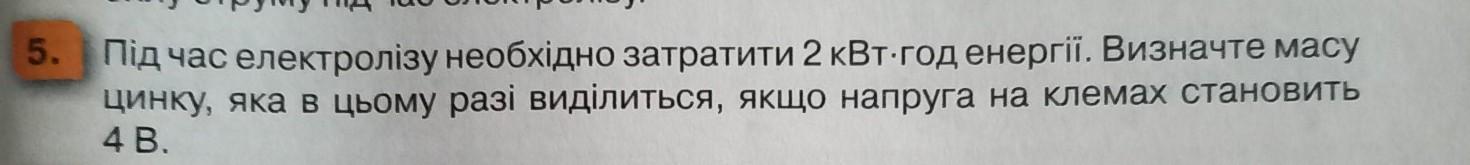 Під час електролізу необхідно затратити 2 кВт*год енергії. Визначте масу цинку, яка в цьому разі виділиться, якщо напруга на клемах становить 4 В.