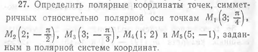 Так как точка симметричная относительно полярной оси, то полярный радиус останется не изменным, угол соответственно поменяется знак на противоположный, то есть: