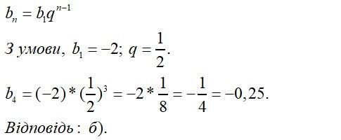 Знайдіть четвертий член геометричної прогресії ( bn ), якщо b1=-2; q= 1/2