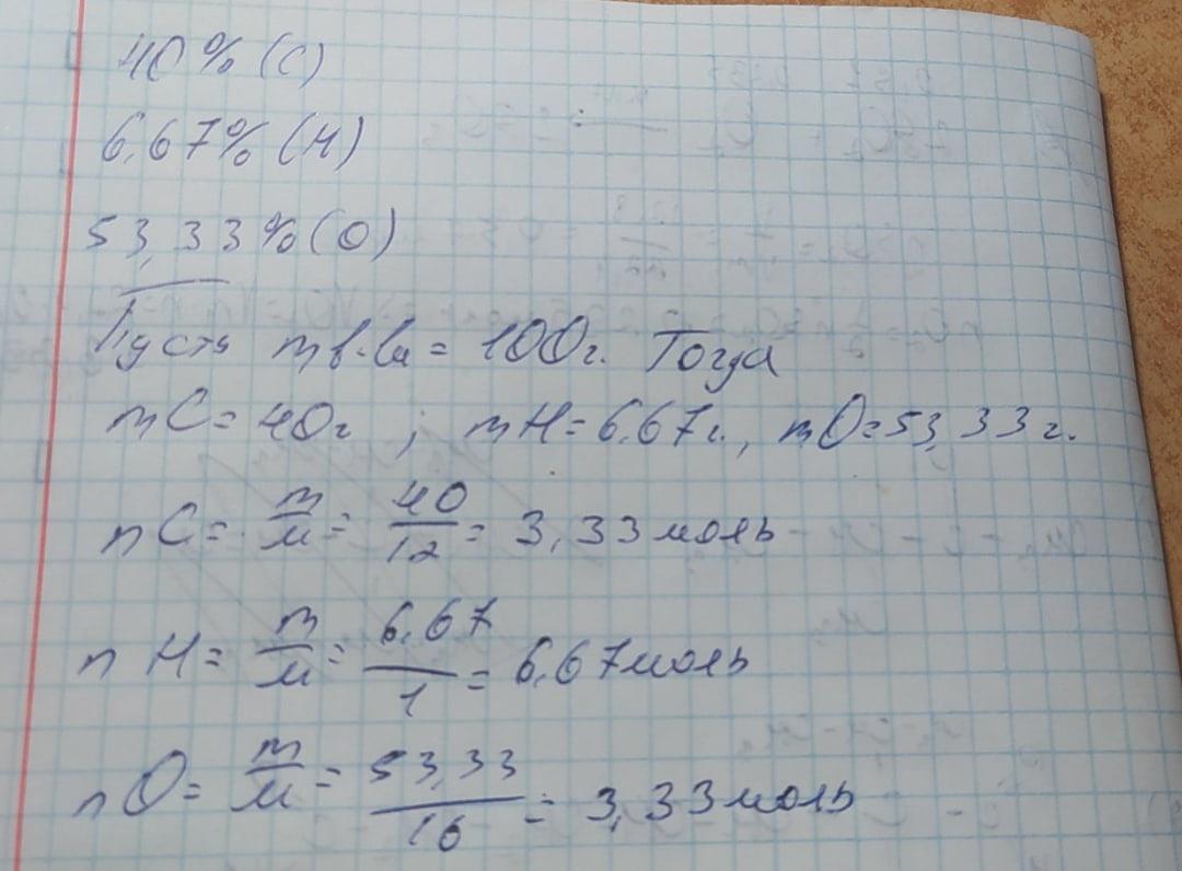 Органическое соединение содержит 40,00 % углерода, 6,67 % водорода и 53,33 % кислорода по массе. Его водный раствор окрашивает лакмус в розовый цвет. Установите вещество.
