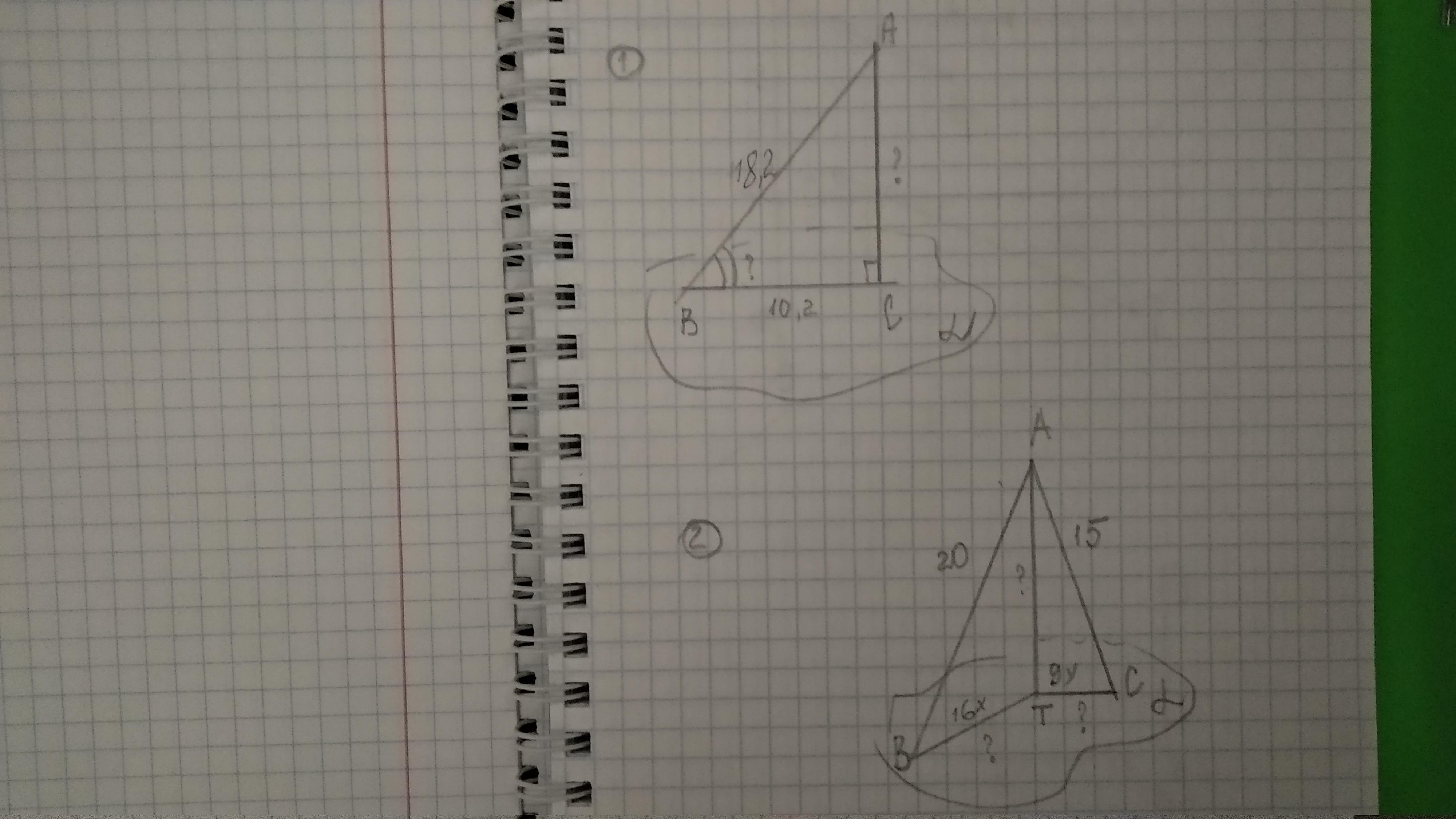 1. З точки А до площини проведено похила довжиною 18,2 см, а її проекція на довжину дорівнює 10,2 см. Обчислити відстань від точки до площини і кут нахилу похилої до площини