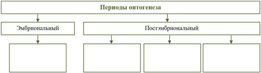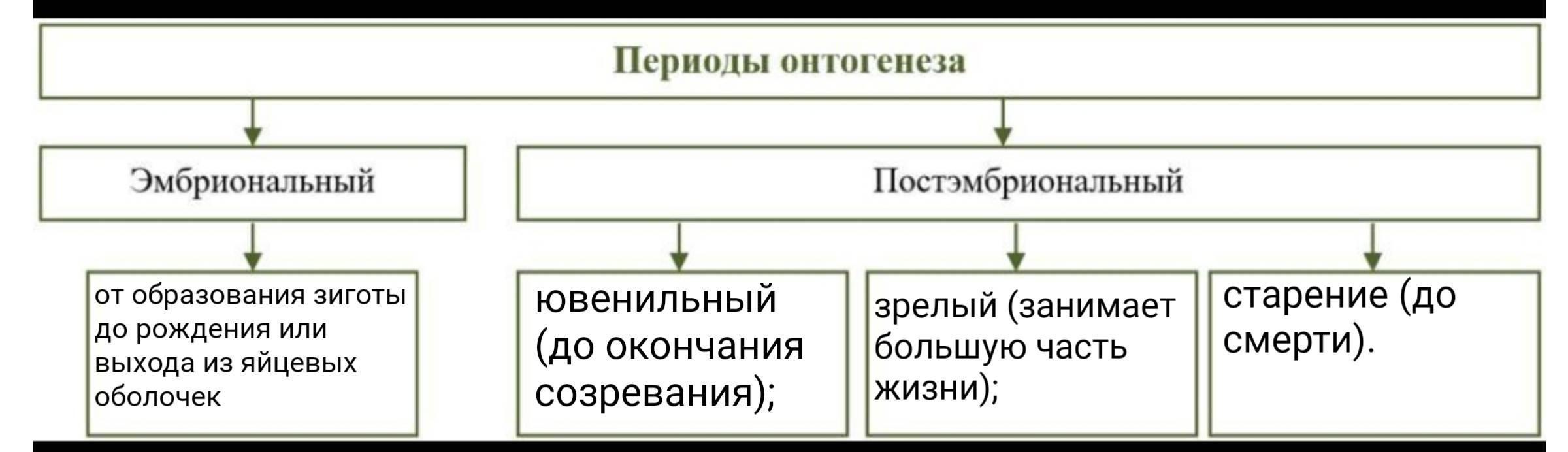 эмбриональный —> от образования зиготы до рождения или выхода из яйцевых оболочек