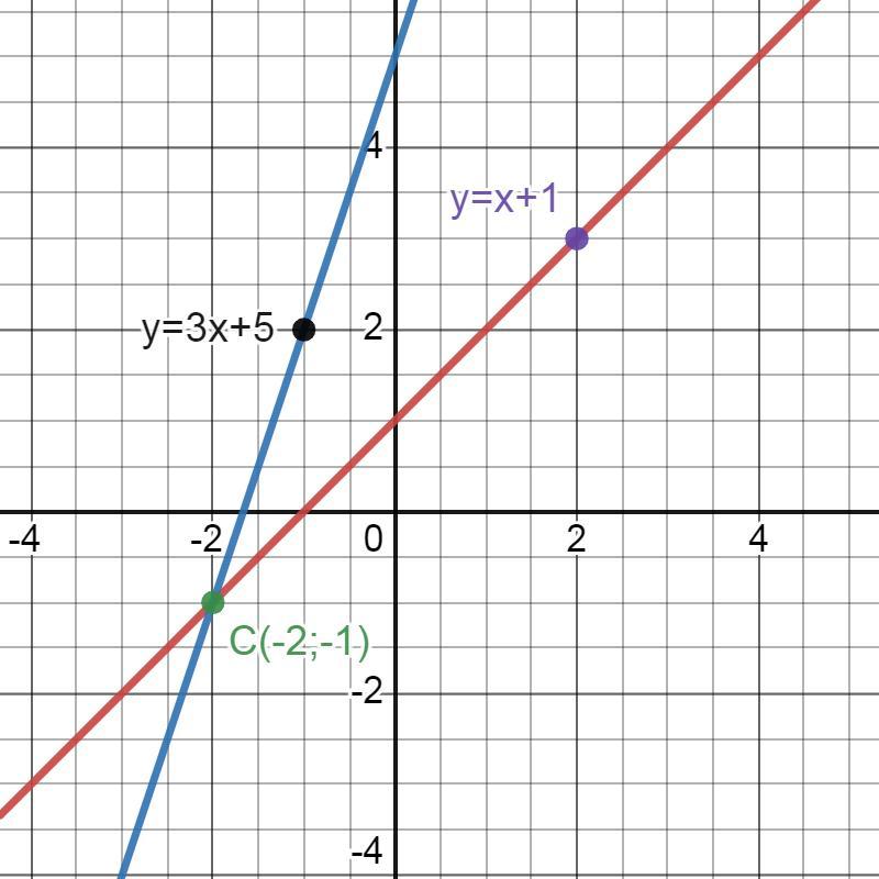 +1 і у = 3х + 5. Назвіть точку перетину прямих С і
