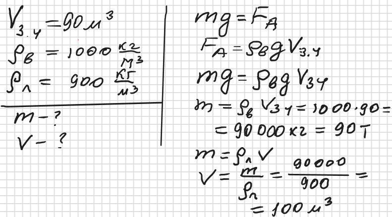 Об'єм зануреної частини айсберга становить 90 м3 Знайдіть масу айсберга і весь його об'єм.