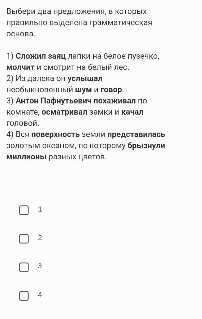 Выбери два предложения, в которых правильно выделена грамматическая основа.