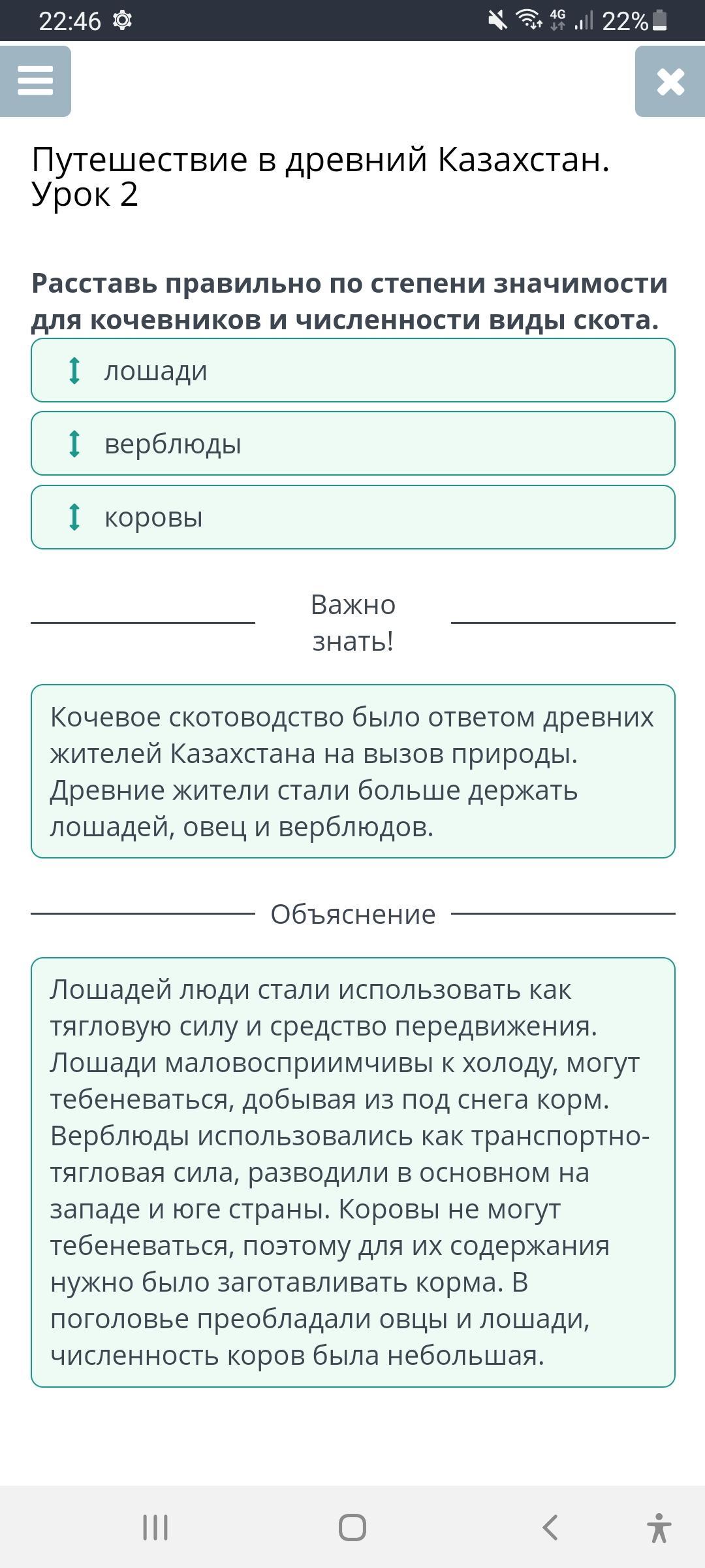 Расставь правильно по степени значимости для кочевников и численности виды скота.