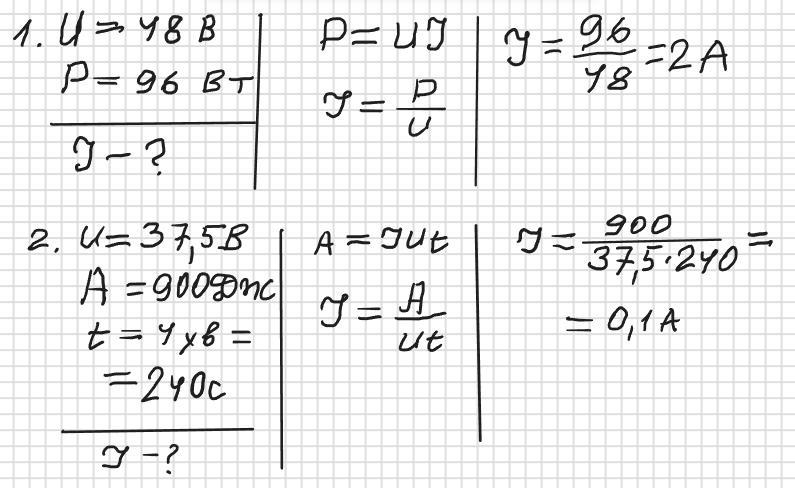 1. На цоколі лампи розжарення написано 48 В, 96 Вт. Яка сила струму протікає через лампу, коли вона працює за номінальної потужності?