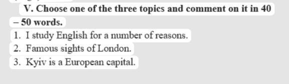 Виберіть одну з трьох тем і прокоментуйте її у 40 -50 слів. 1. Я вивчаю англійську мову з кількох причин.