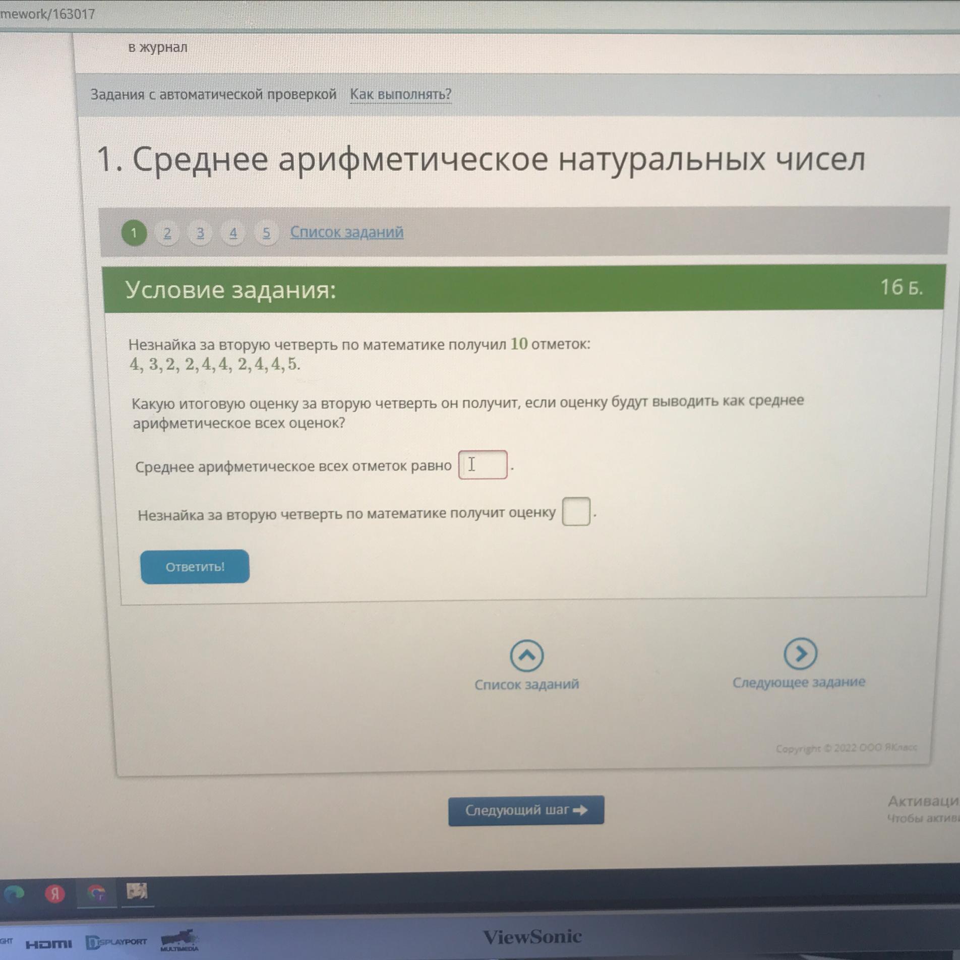 Какую итоговую оценку за вторую четверть он получит если оцени будут выводить как среднее арифметическое всех оценок?