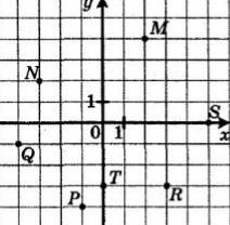 M (2; 4). N (-3;2). P (-1;-4). Q (-4;-1). R (-3; -3). S (5; 0). T (0; -3)