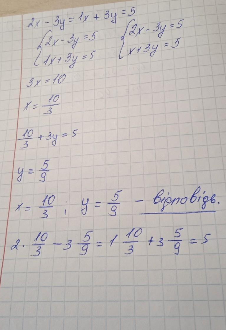 Не виконуючи побудови, знайти координати точки перетину графіків рівнянь: 2x – Зу = 1 іх+ Зу = 5