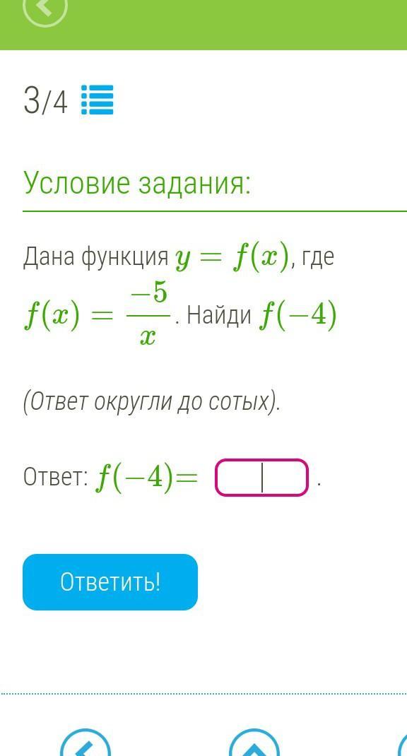 просто вместо х подставляем значение. f(-4)=(-5)/(-4)=1,25
