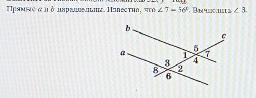 Прямые а и b параллельны. Известно, что угол 7= 56°. Вычислить угол 3.