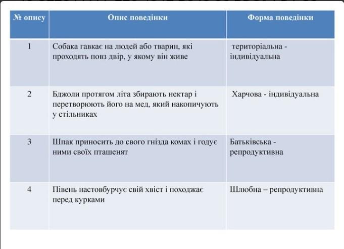 Форма поведінки тварин: Індивідуальна, Репродуктивна, Соціальна.