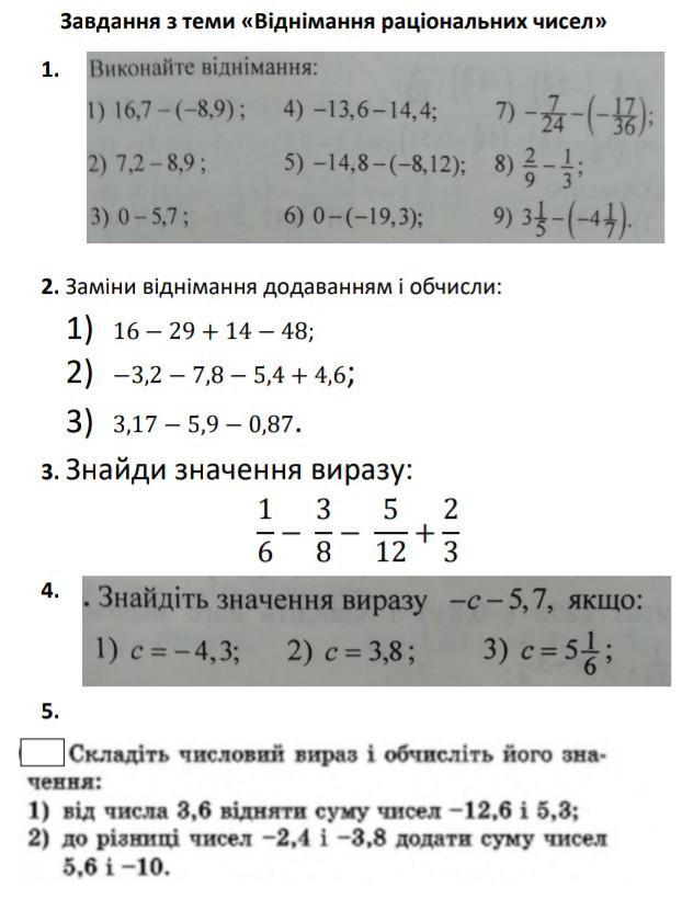 ТЕРМІНОВО! Допоможіть будь лааааскааа!"Віднімання раціональних чисел".