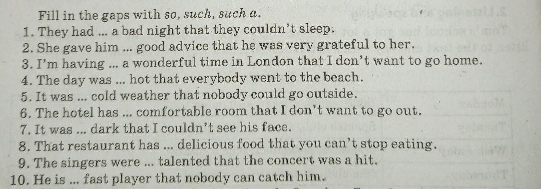 Fill in the gaps with so,such, such a. Помогите пожалуйста, очень нужно даю 30 баллов!