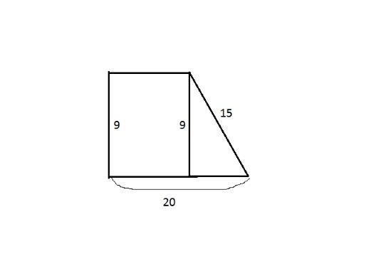 В прямоугольной трапеции боковые стороны равны 15 см и 9 см, а большее основание - 20 см. Найдите меньшее основание.