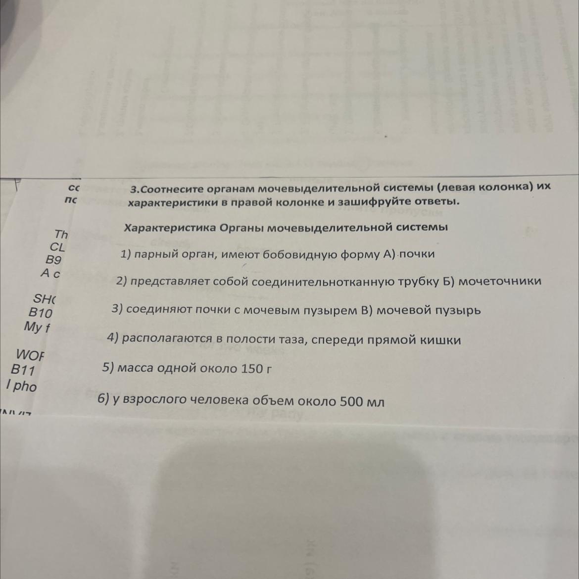 3.Соотнесите органам мочевыделительной системы (левая колонка) их