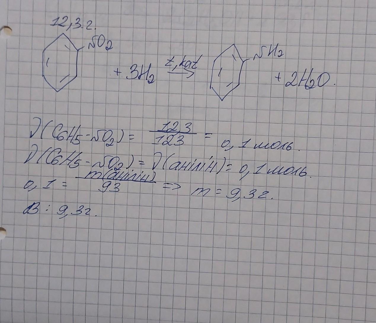 Коефіцієнт у нітробензену і аніліну дорівнює одиниці, тому кількість речовини однакова