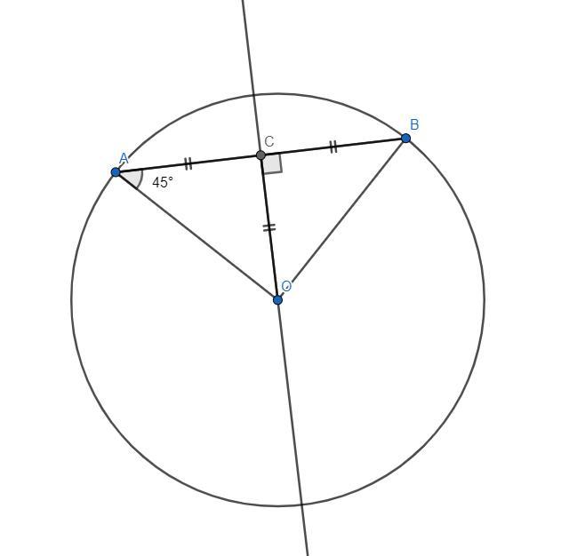 3. Из центра окружности. Ок хорде AB, равной 20 см, проведен перпендикуляр 0С. Найдите его длину, если <OAB=45.