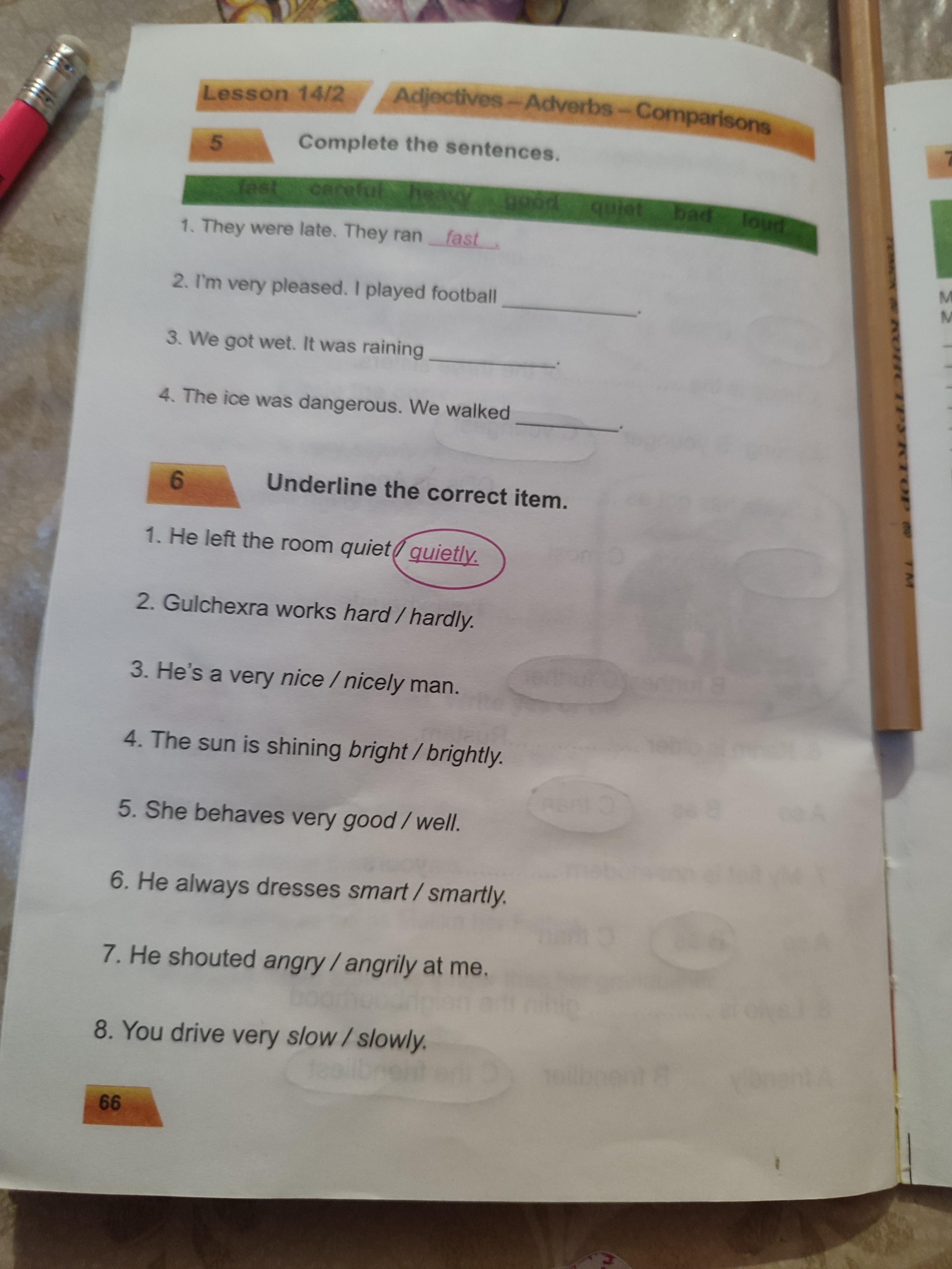 Пожалуйста помогите в 5 если не видно слова: fast, careful, heavy, good, bad, loud
