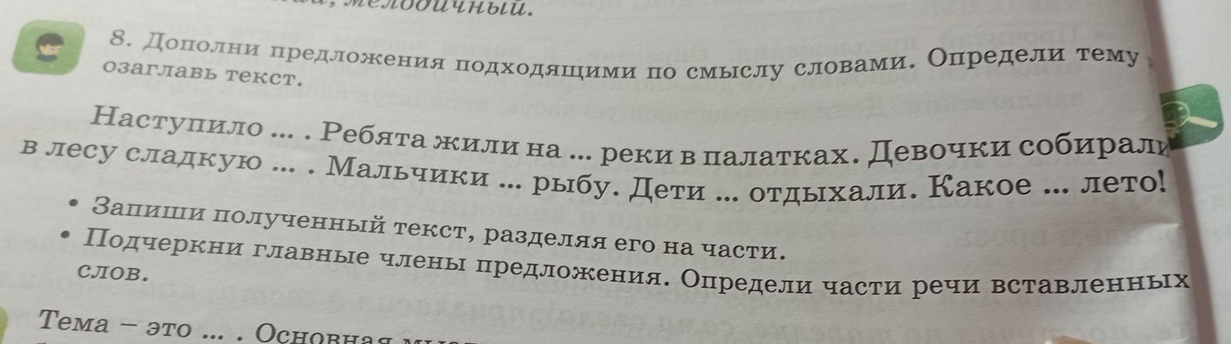 Помогите русский язык стр 42 упр 8 запиши полученный текст разделяя его на части,подчеркни главные члены предложения.Определи части речи вставленных слов