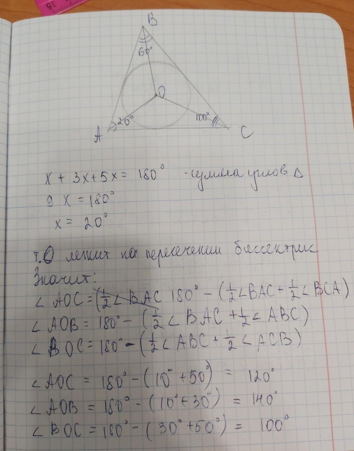 В треугольник, углы которого относятся как 1:3:5, вписана окружность. Найдите углы между радиусами, проведенными в точки касания.РЕШИТЕ НА ЛИСТОЧКЕ СРОЧНО ПОЖАЛУЙСТА ДАЮ 55 БАЛЛОВ СРОЧНО НУЖНО ПОЖАЛУЙСТА.