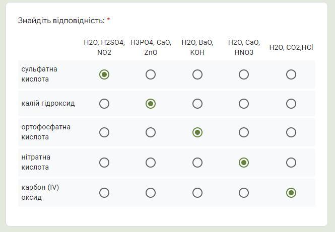 Хімія 7 клас, написати відповідь по типу: сульфатна каслота-номер ряду. Два рази один и тий же ряд не можна. (Відповіді на скріншоті не правильні, але міг і попасти випадково)