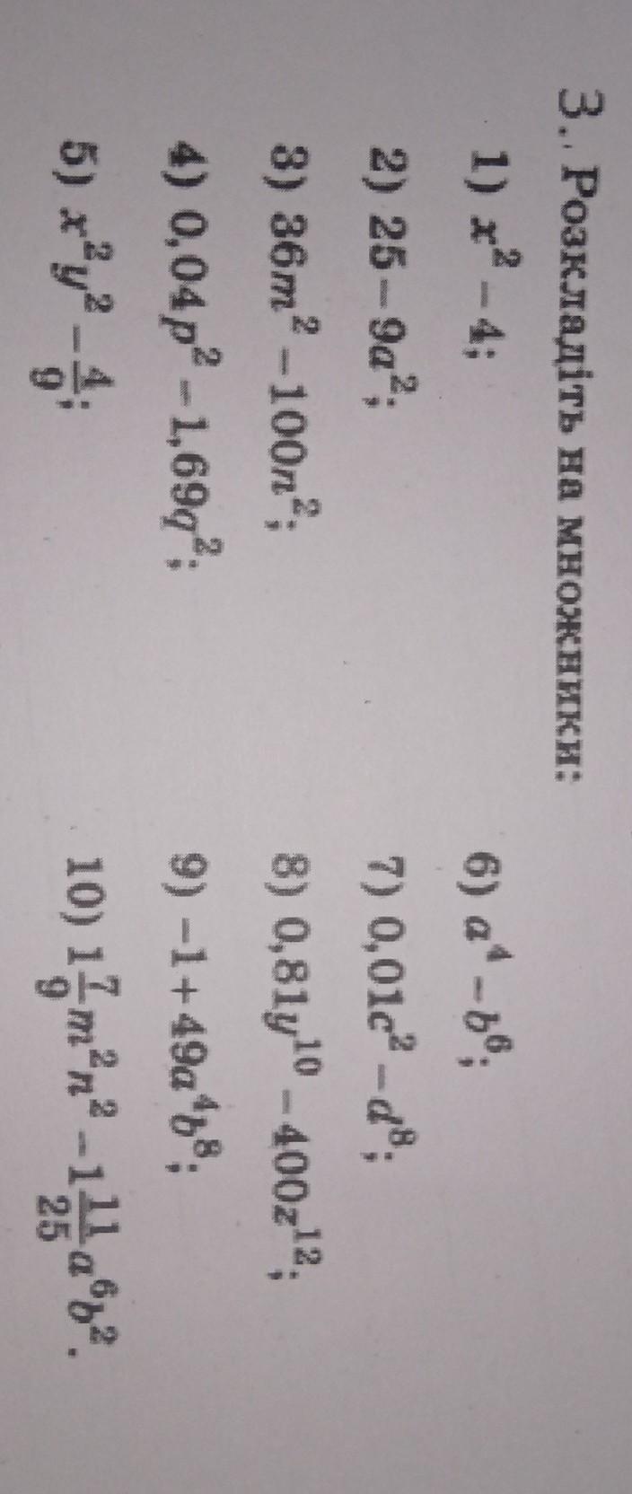 10)1, 7/9 m^(2)*n^(2)-1, 11/25a^(6)*b^(6)=(1, 1/3 *mn- 1,2a^(3)*b^(3))