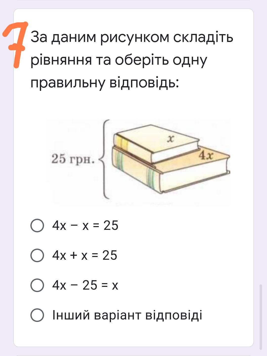 6)Перше з чисел на 4 більше ніж друге. Перше число позначили за x. Як виразити через x друге число?