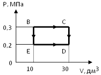 Газ переходит из состояния В в состояние D один раз посредством процесса ВСD, другой раз посредством процесса ВЕD. Используя данные рисунка, найдите разность количеств теплоты, получаемых телом в ходе обоих процессов.