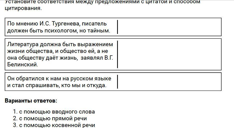 Установите соответствие между предложениями с цитатой и способом цитирования.