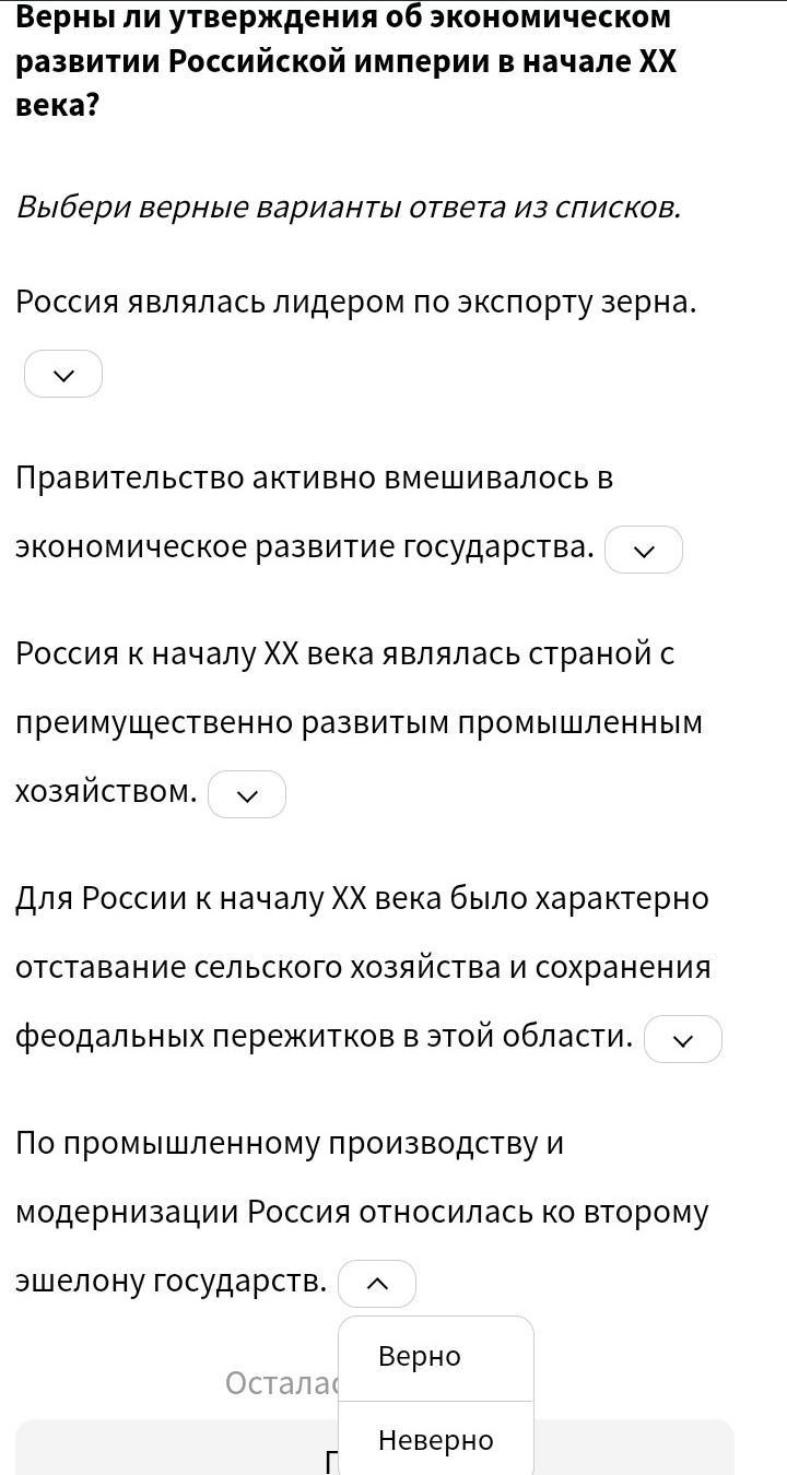 Верны ли утверждения об экономическом развитии Российской империи в начале XX века?