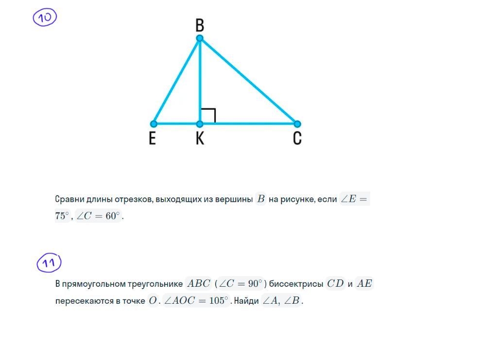 ВК-высота ( расстояние от точки до прямой), значит меньше длины наклонных : BC>BE>ВК