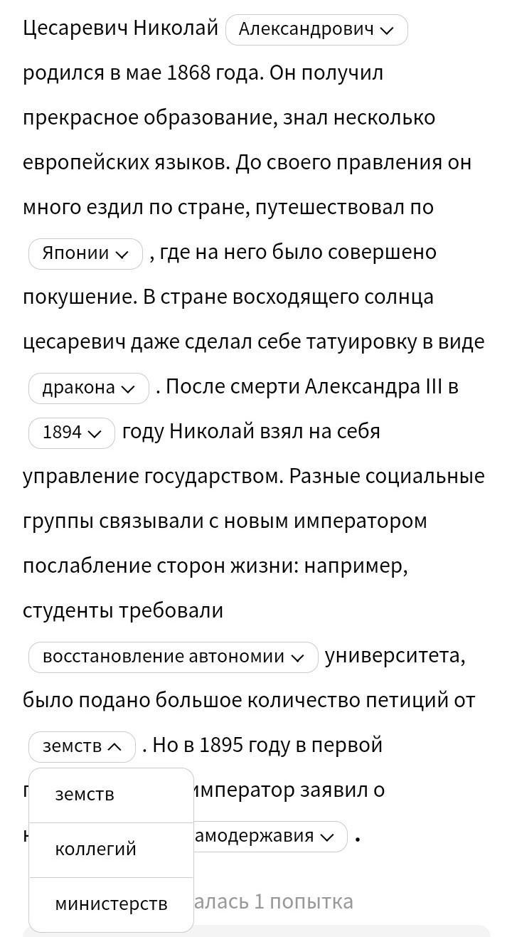 Прочитай текст о Николае II и заполни пропуски в нём.