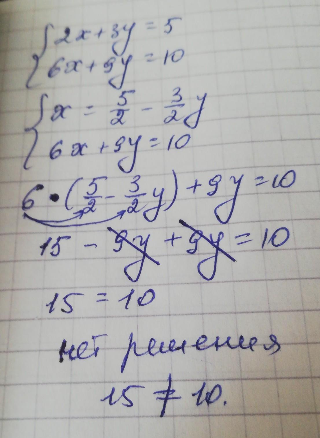 2 Икс плюс 3 игрек равно 5 чёрточка x -3 6 Икс плюс 9 игрек равно 10 минус 6 икс минус 9 игрек равно минус 56 Икс плюс 9 игрек равно 10 минус 15 плюс 10 игрек равно минус 15