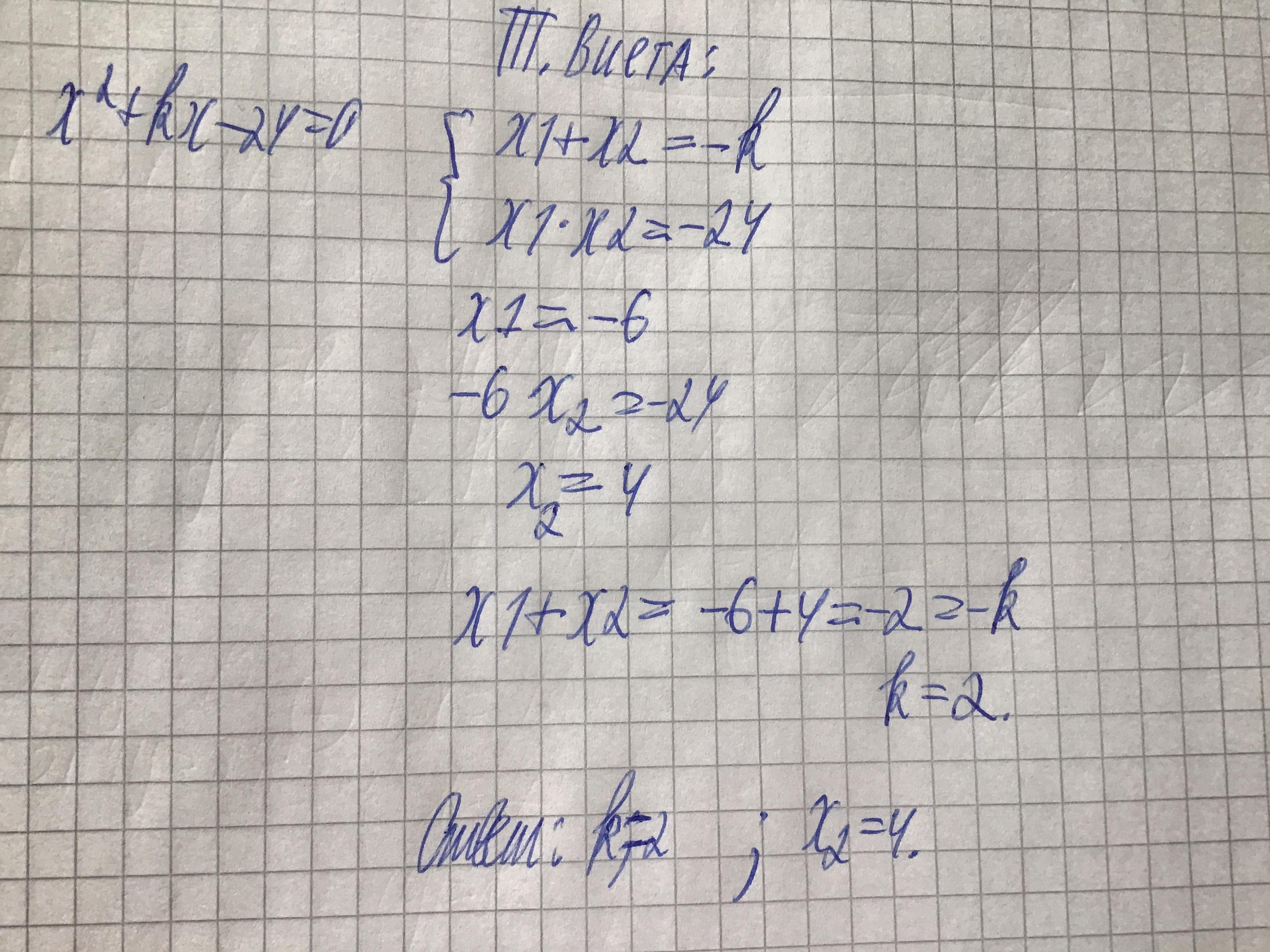 Дано: х²+kx-24 = 0