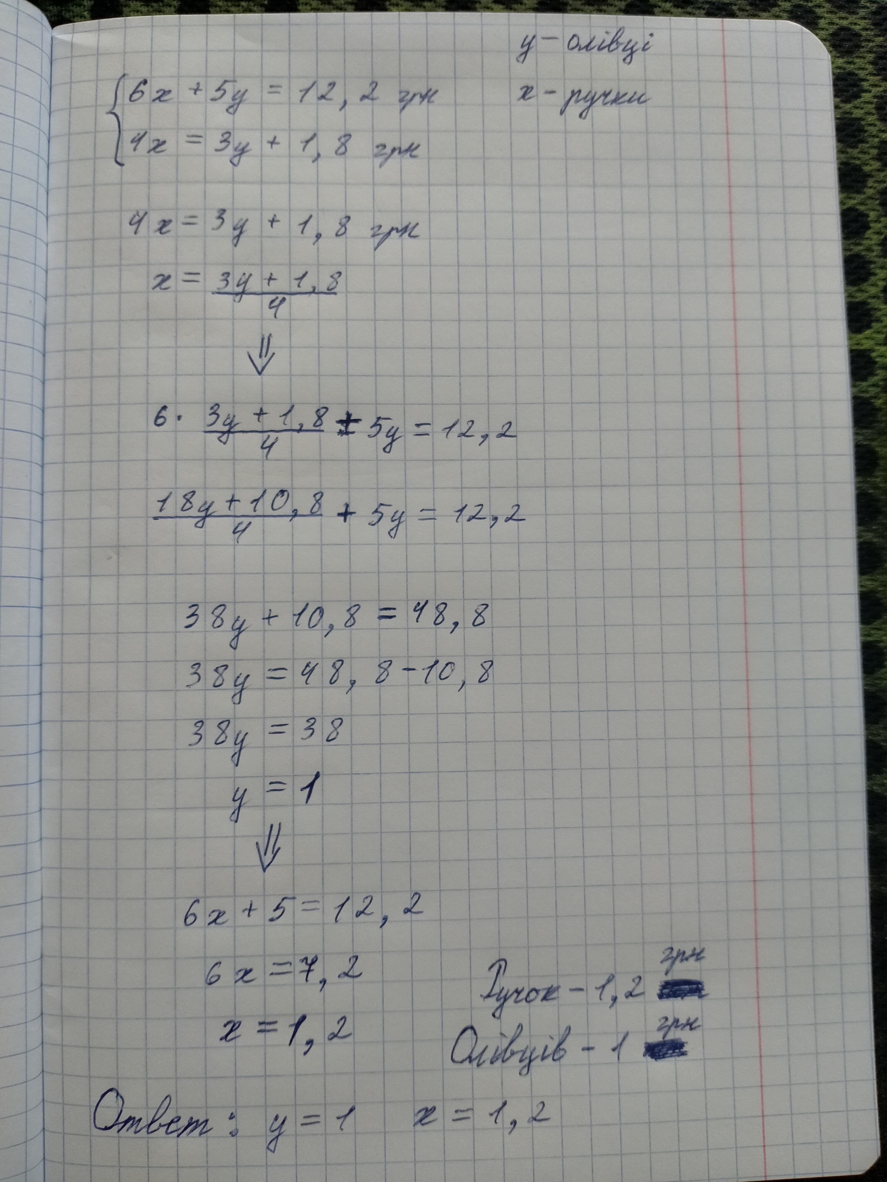 За 6 ручок і 5 олівців заплатили 12,2 грн. Скільки коштує ручка і олівець якщо за 4 ручки заплатили на 1,8 грн більше, ніж за 3 олівці?