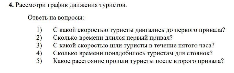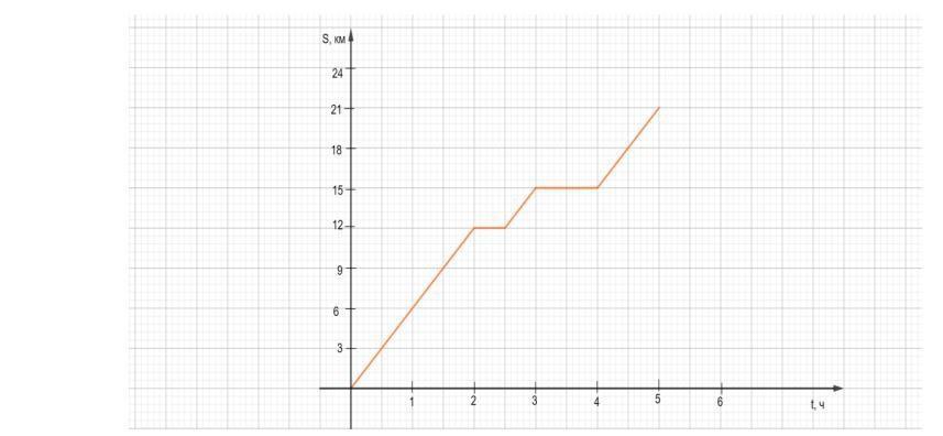 1 - 6км/ч, 2- 30 минут, 3- 6км/ч, 4 - 1 час 30 минут, 5 - 6 км