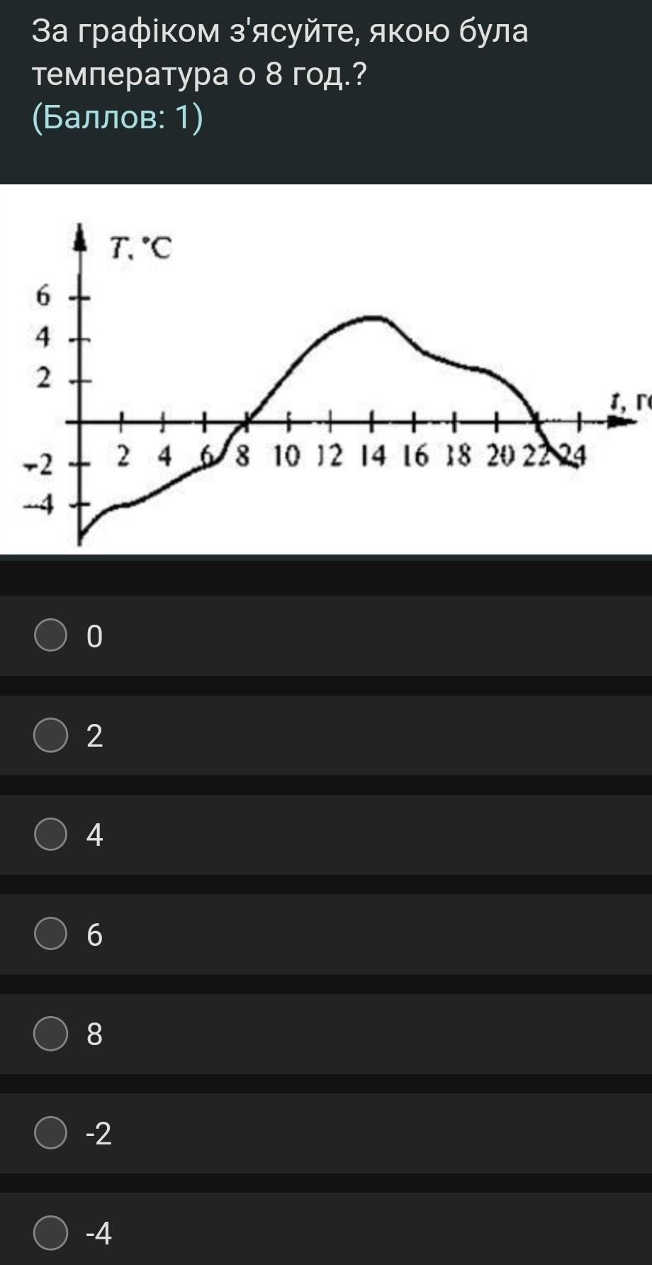 знизу шкала часу а зліва шкала температури. якщо подивитися на графік можна зрозуміти що він проходить в точці 8 де 0 - температура. 8 - час.