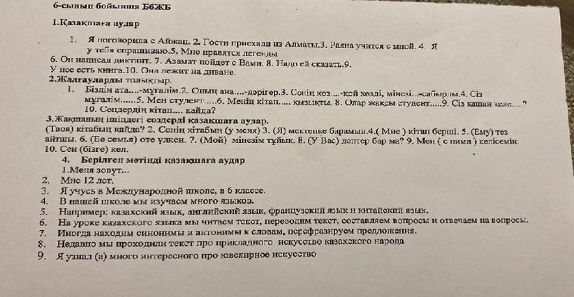 1)ана10)кітаптарың қайда8)болады4)мұғалімсіз.