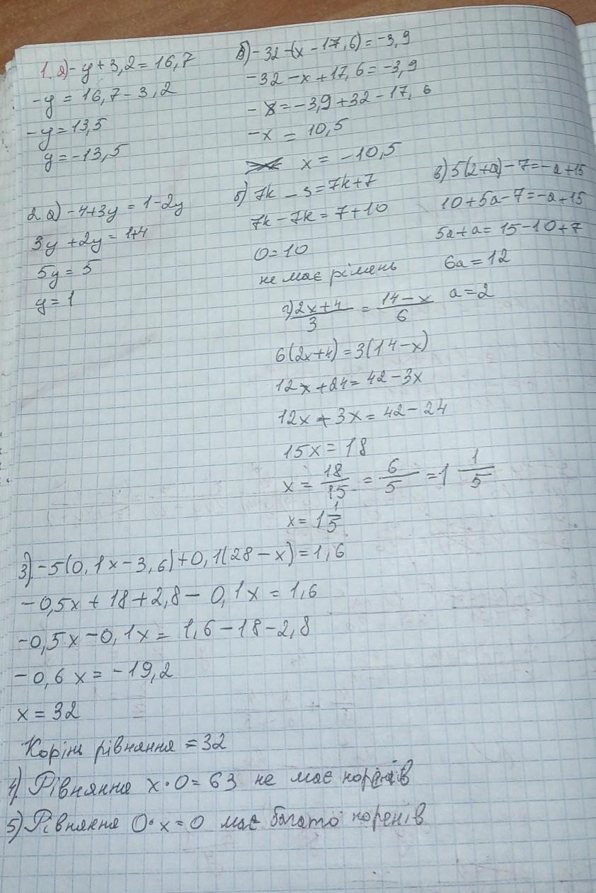 3. Знайдіть корінь рівняння: -5(0,1x-3,6)+0,1(28-x)=1,6.
