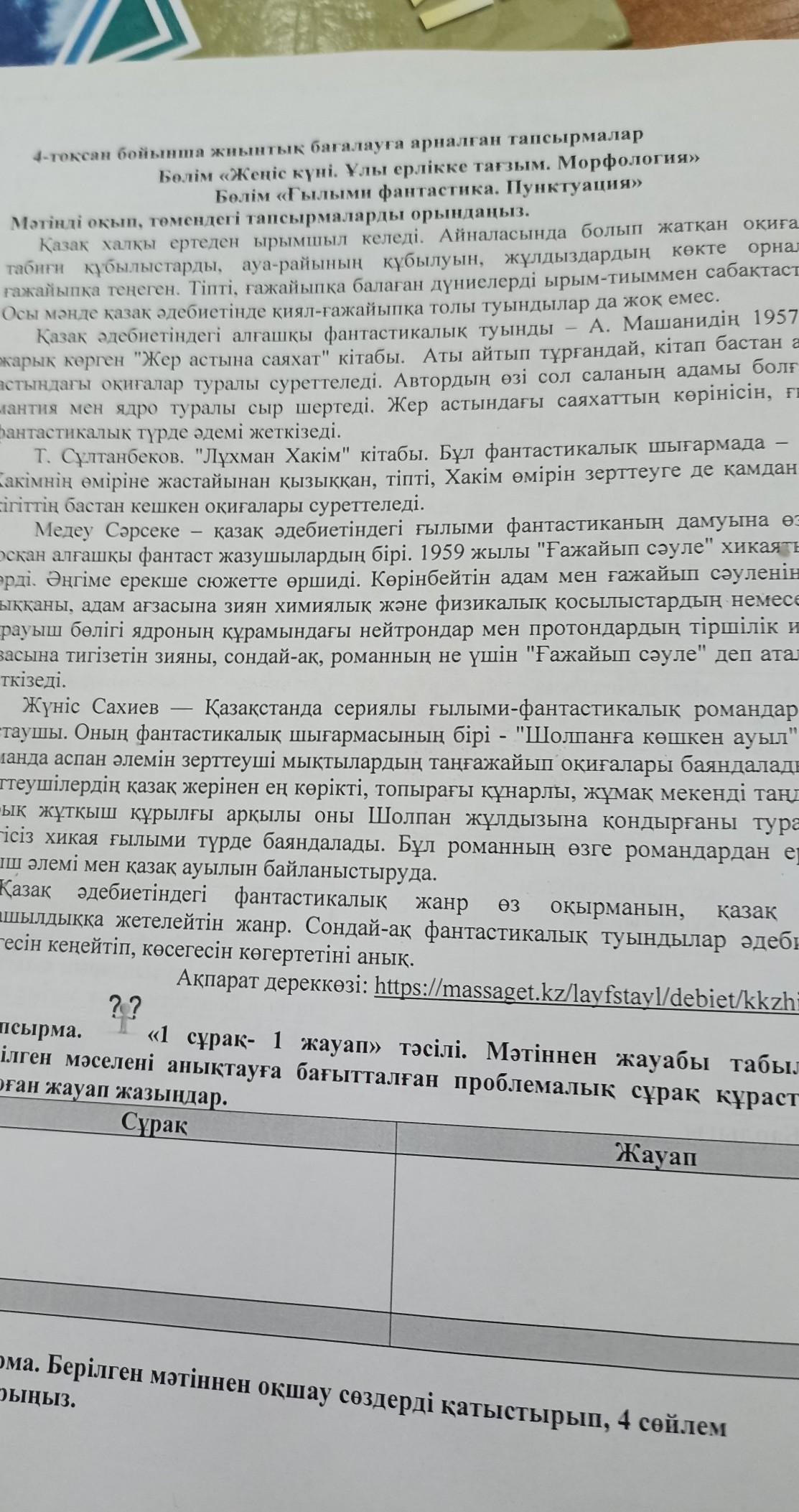 Бөлім «Ғылыми фантастика. Пунктуация»