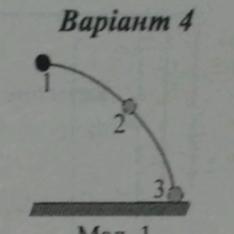 Тіло кинули горизонтально з деякої висоти (мал. 1). У якій точці потенціальна енергія тіла відносно Землi мiнiмальна?