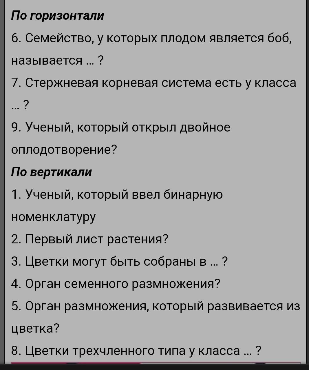 Пожалуйста!!!!!!СРОЧНО помогите сделать кроссворд по биологии 6 класс на тему: семейства покрытосеменных растений!!!!