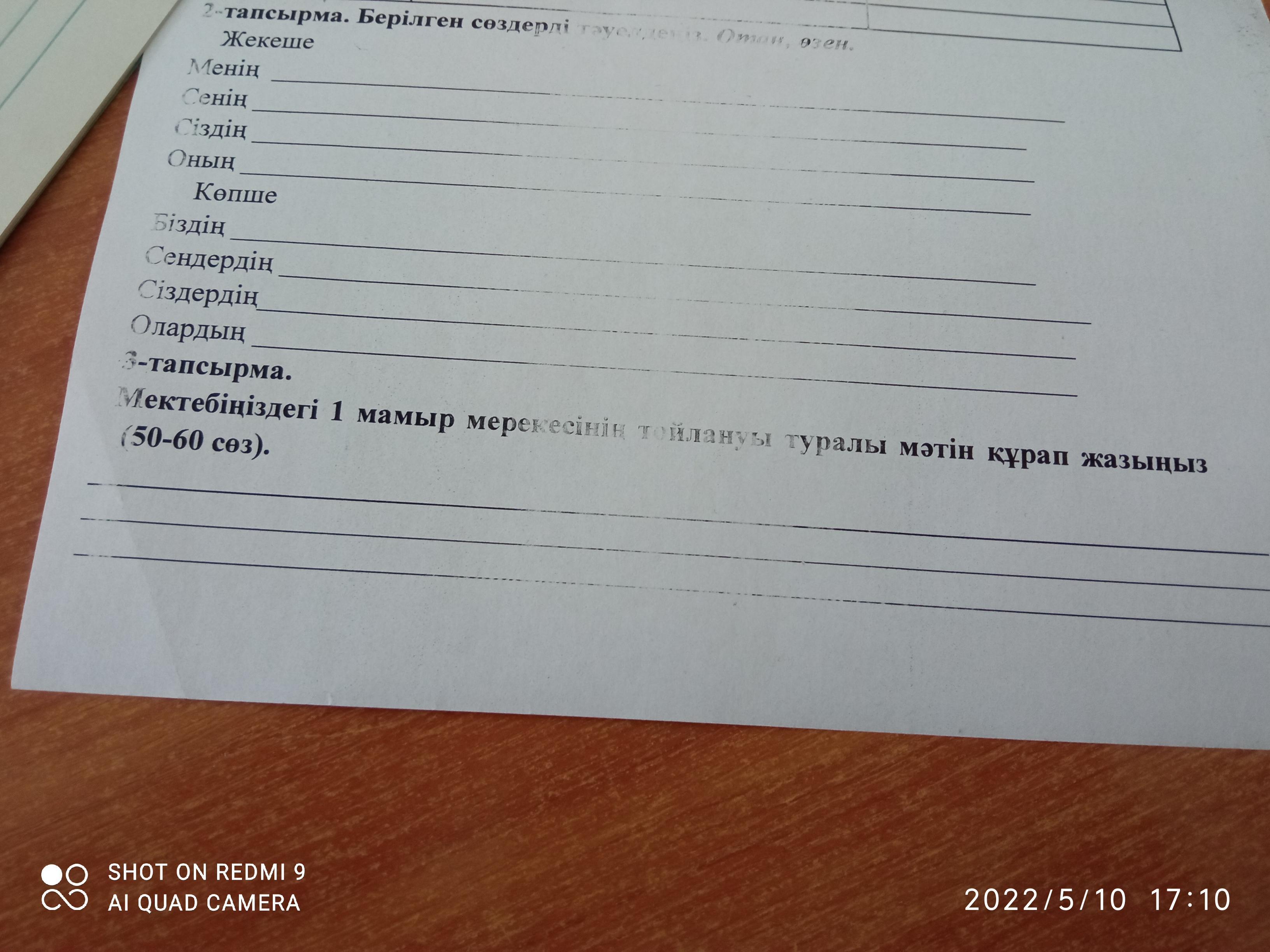 Бірінші мамыр – әрқайсымыз үшін ерекше күн. Адамдар мерекелік атмосфераны тамашалау үшін көшеге шығады. Қазір бұл мереке бұрынғыдан сәл өзгеше өтеді. Бірінші мамыр – көктем мен еңбек күні. Бұл күннің жақындауына бізді қуантуға ата-әжелеріміздің еңбегі зор.