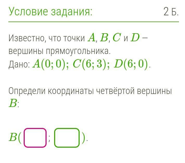 по точкам А и Д длину. Она равна 6. Следовательно точка Б будет (0;3)