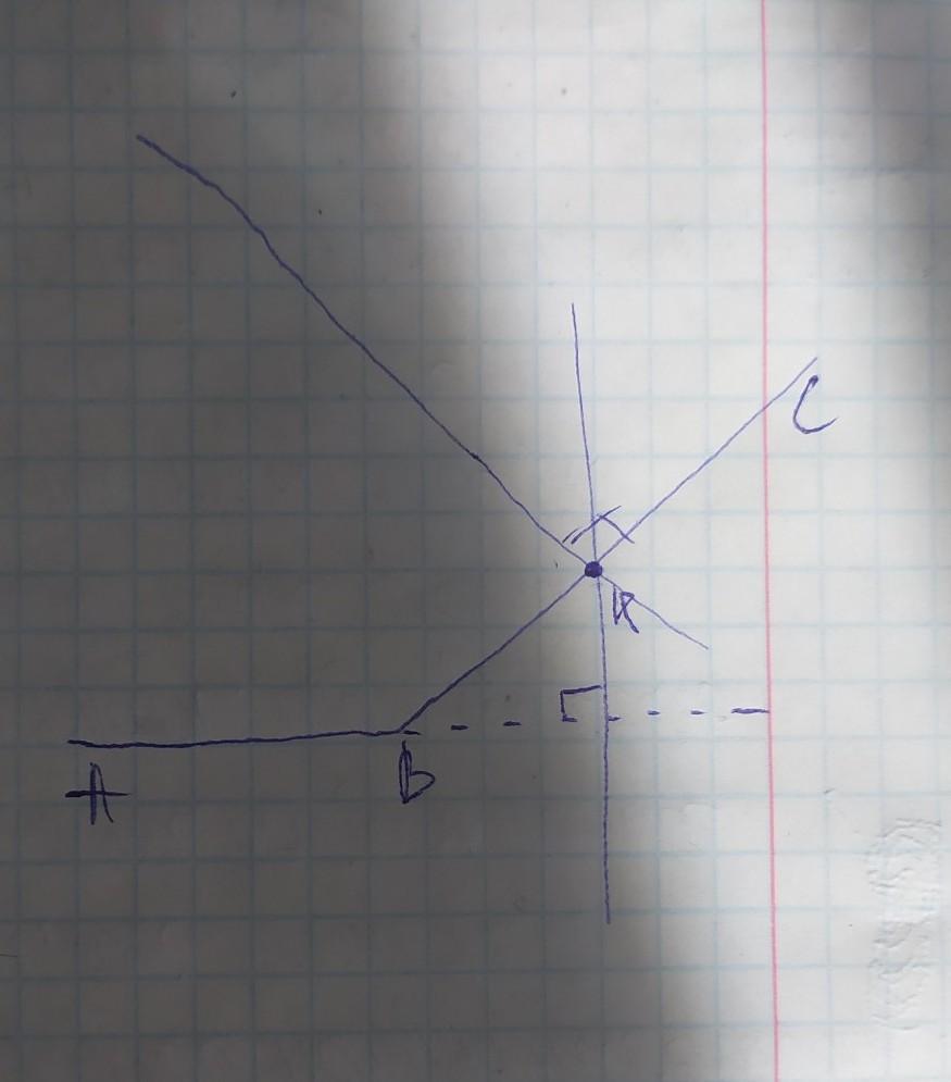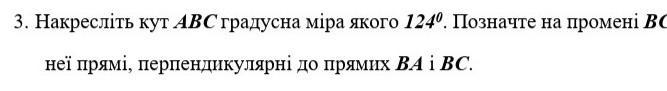 Накресліть кут ABC градусна міра якого 124° позначте на промені BC точку K і проведіть через неї прямі , перпендикулярні до прямих BA і BC