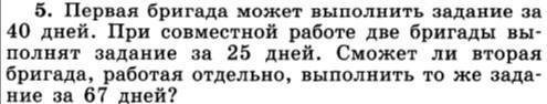 Ответ: нет, не сможет, производительность труда второй бригады должна быть выше.
